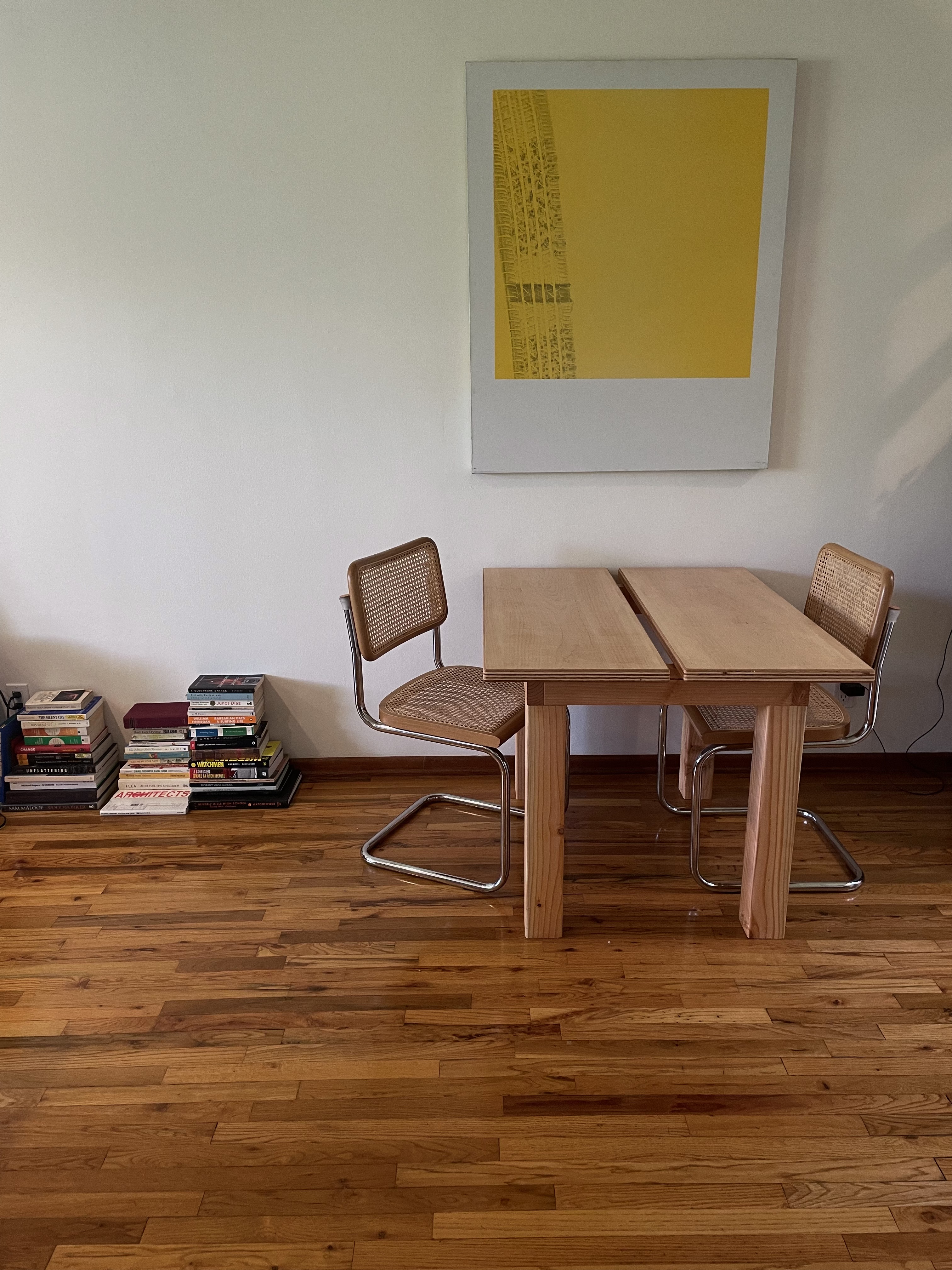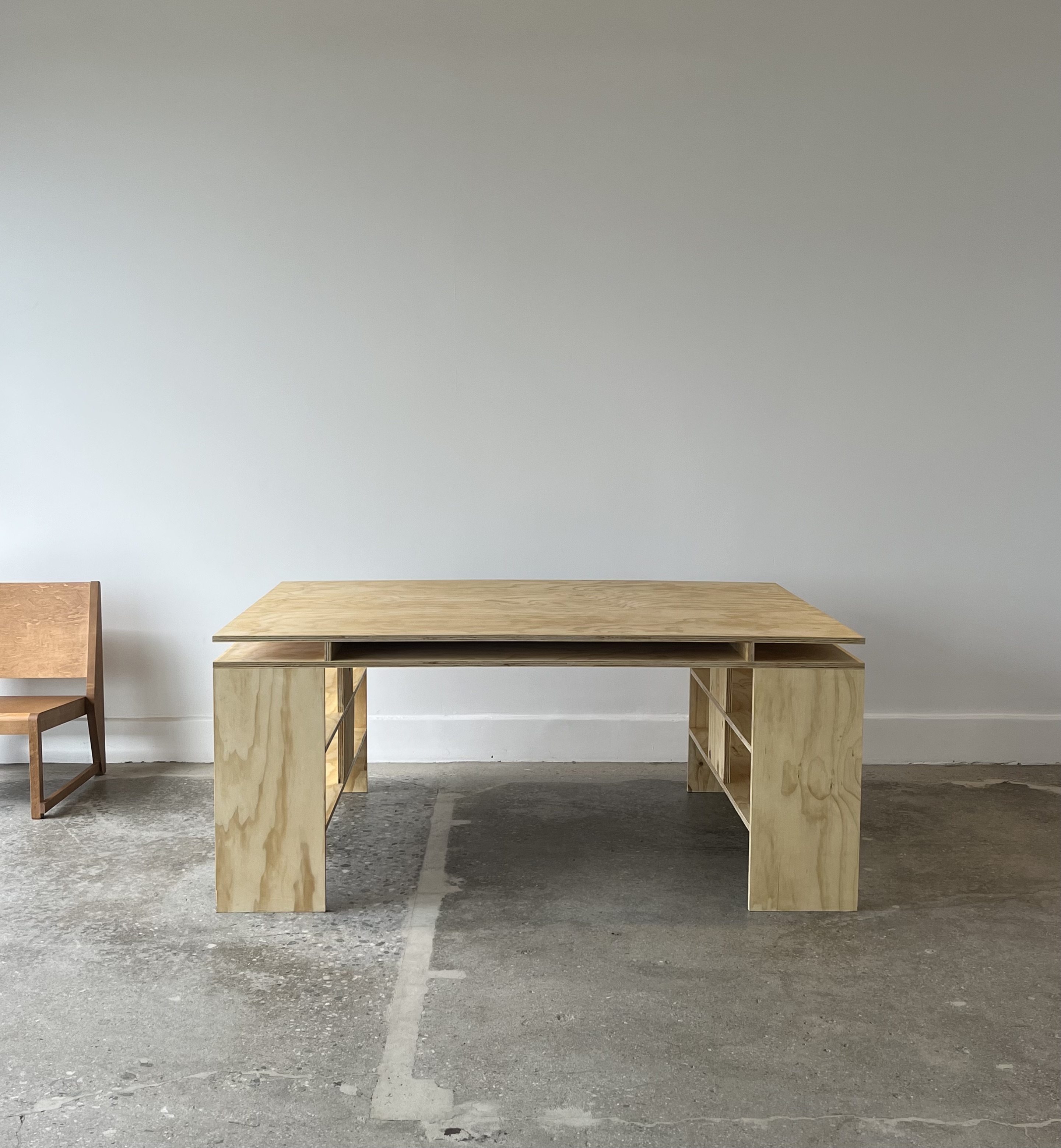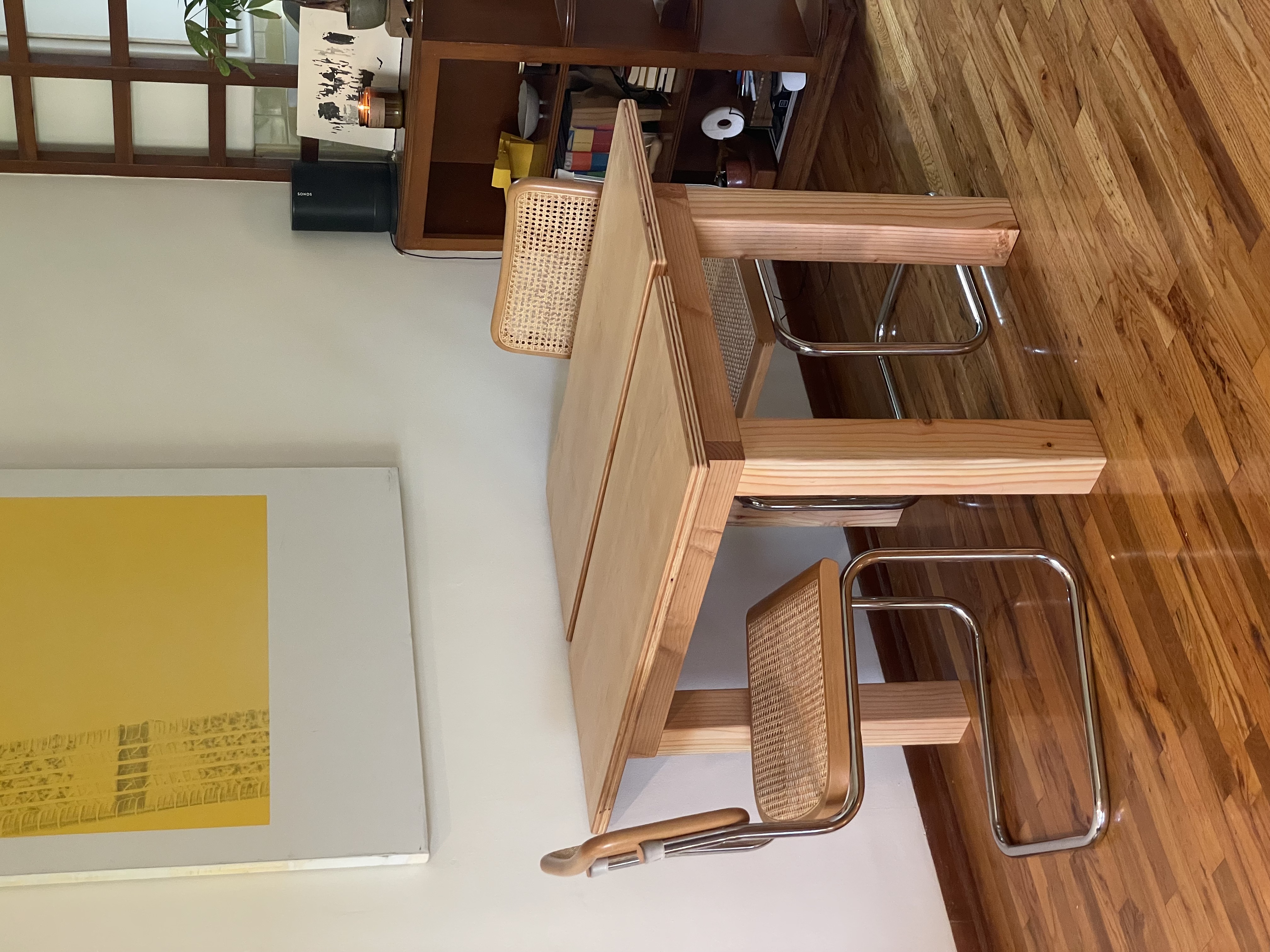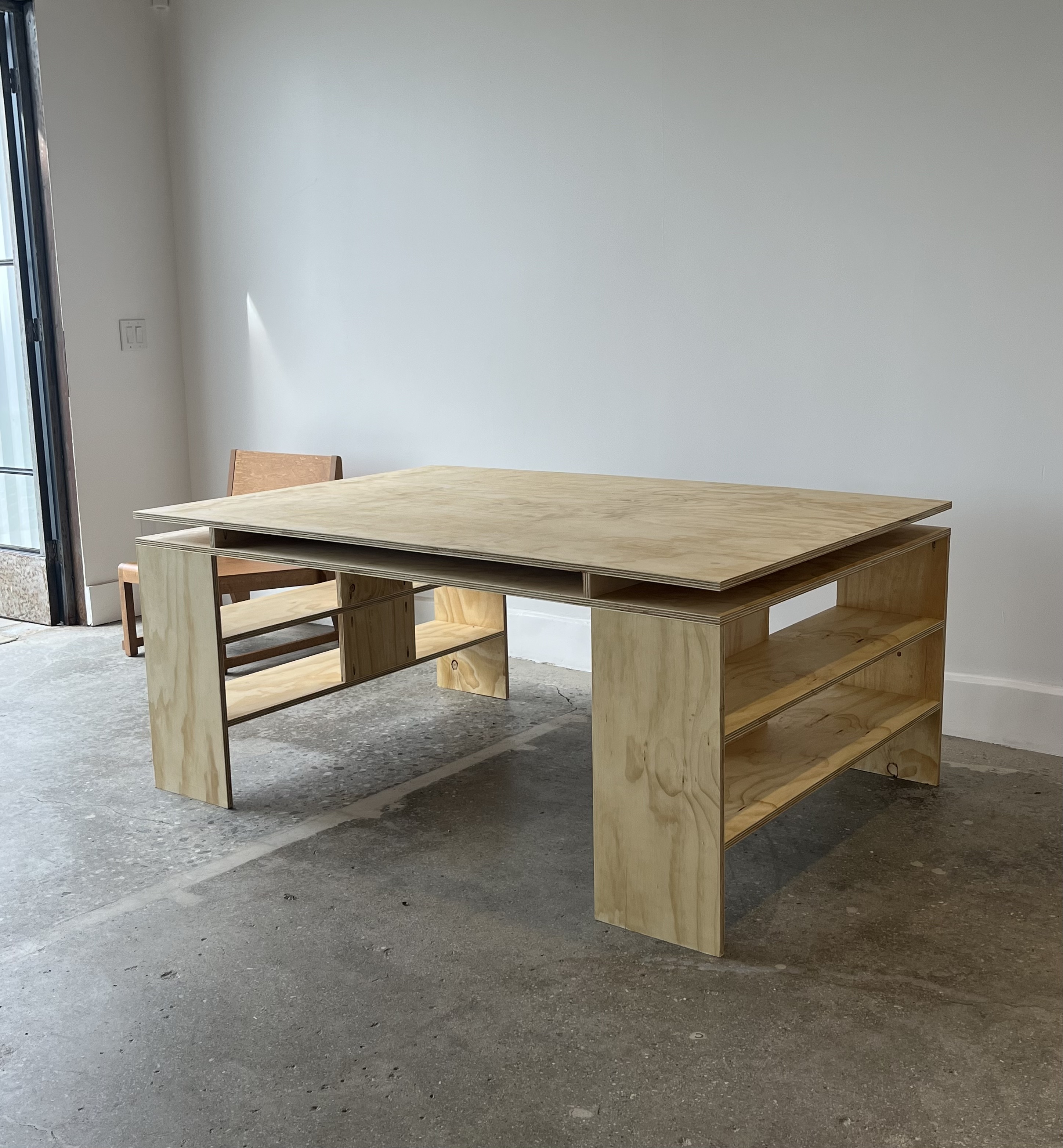 Clearly a direct attempt at recreating Donald Judd’s Library Desk, this commissioned table takes every cue possible from the famous designer. A utilitarian design that lends itself to a working desk or drafting table, this table is made from cheap affordable grade plywood. Once again, I did not design this table.