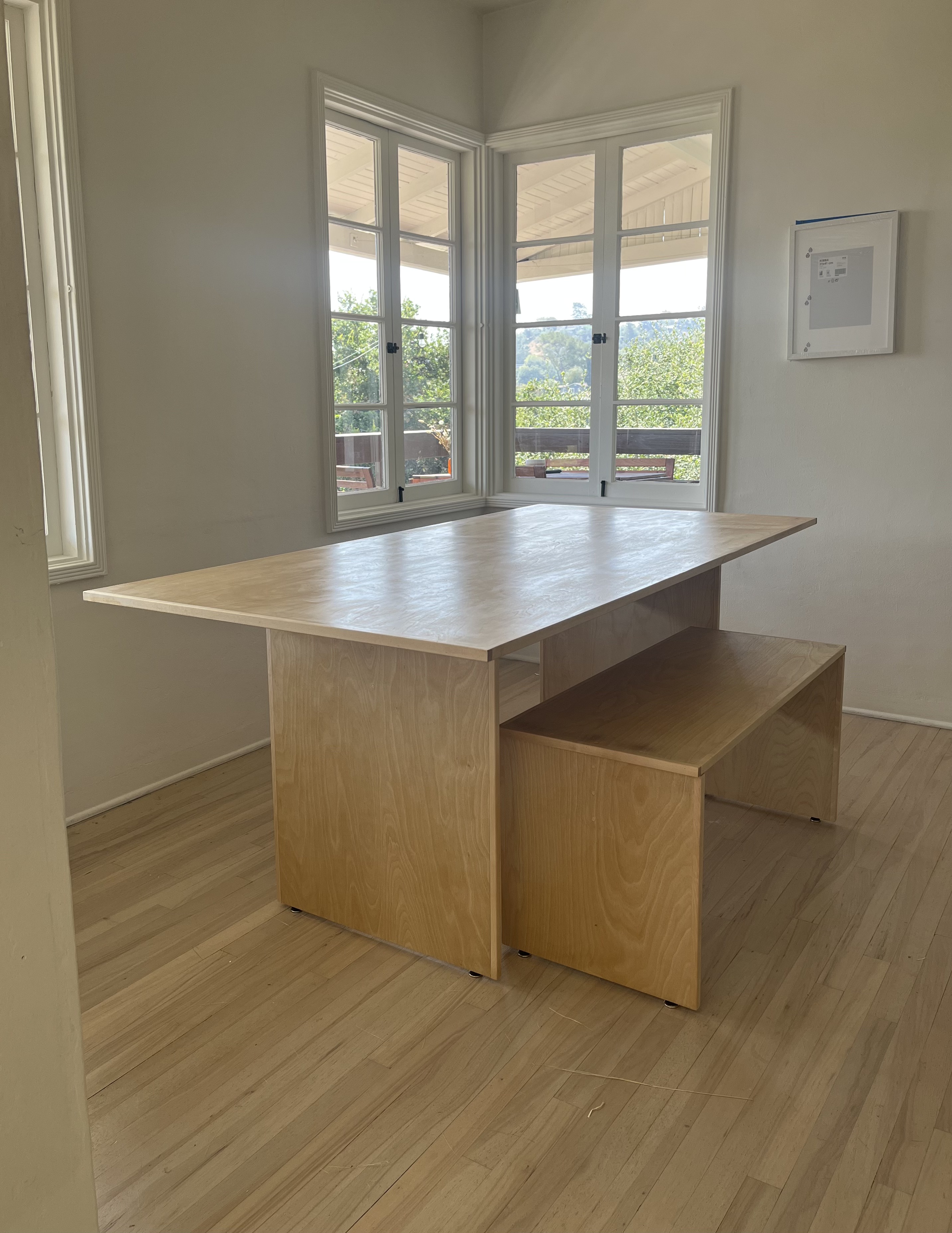 This dining table and matching bench set is made from ¾ maple plywood, with solid maple edging. The commissioned design combines the functionality of plywood with the elegance of solid hardwood.