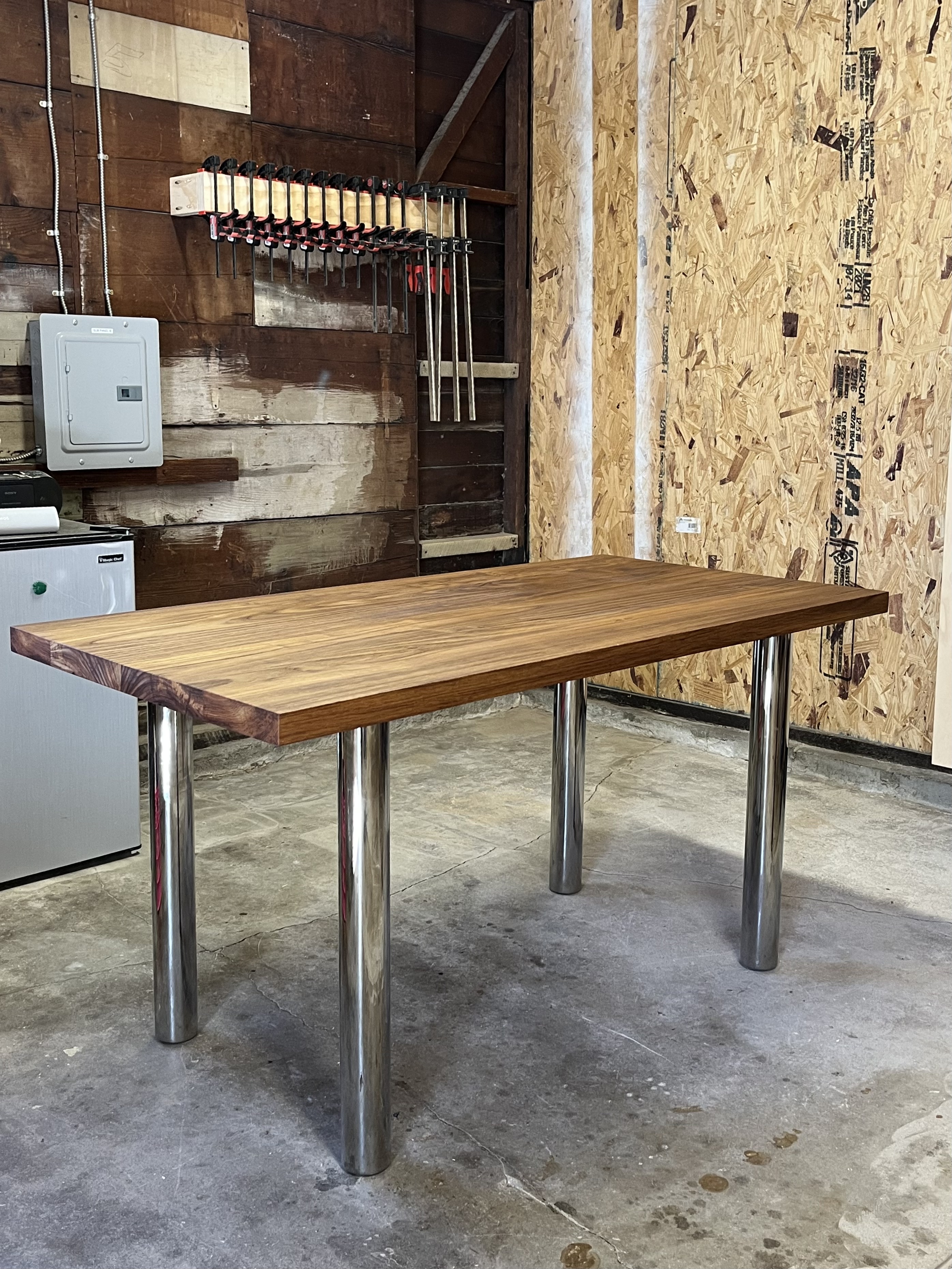 Using the most accessible building materials, this table can scale anyway you like to provide a desk or dining surface. Built with 2x4s, 4x4s, and shop plywood.